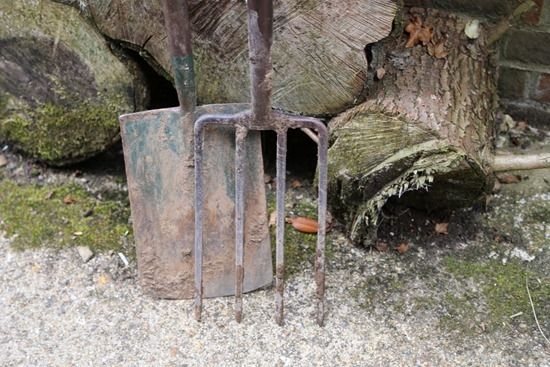 I must admit I'm not good at taking care of my garden tools. After use digging and cultivating tools are usually stacked against one another by the back door. A pile of dry soil gradually accumulates beneath them and every so often (rarely) I have a good clean up.